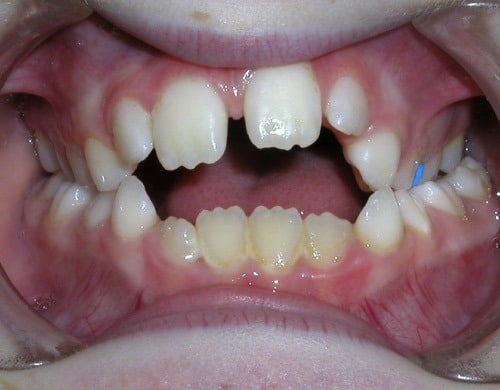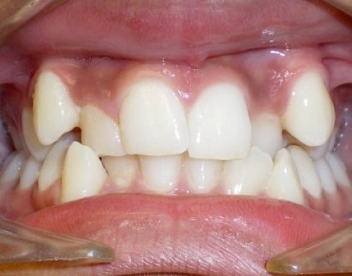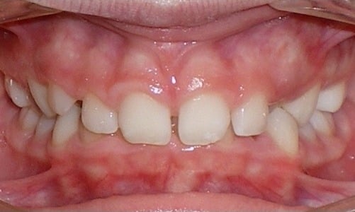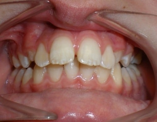 This patient’s front teeth did not overlap due to a previous thumb sucking habit and the upper jaw was too narrow.