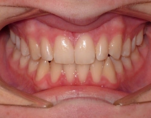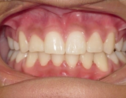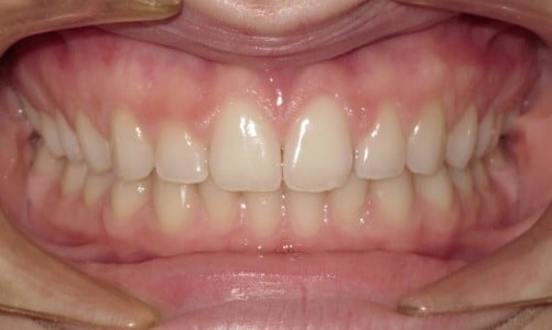 This patient was concerned with the spacing between the teeth and the deep bite (upper teeth overlapping the lower teeth).